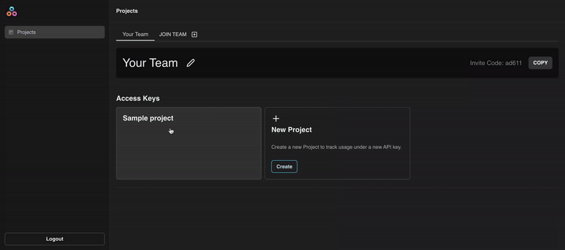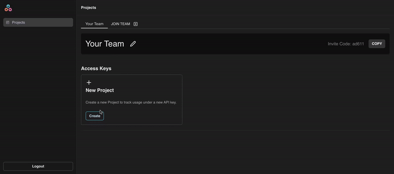 Once logged in, click Create on the New Project card, and choose a name for your project